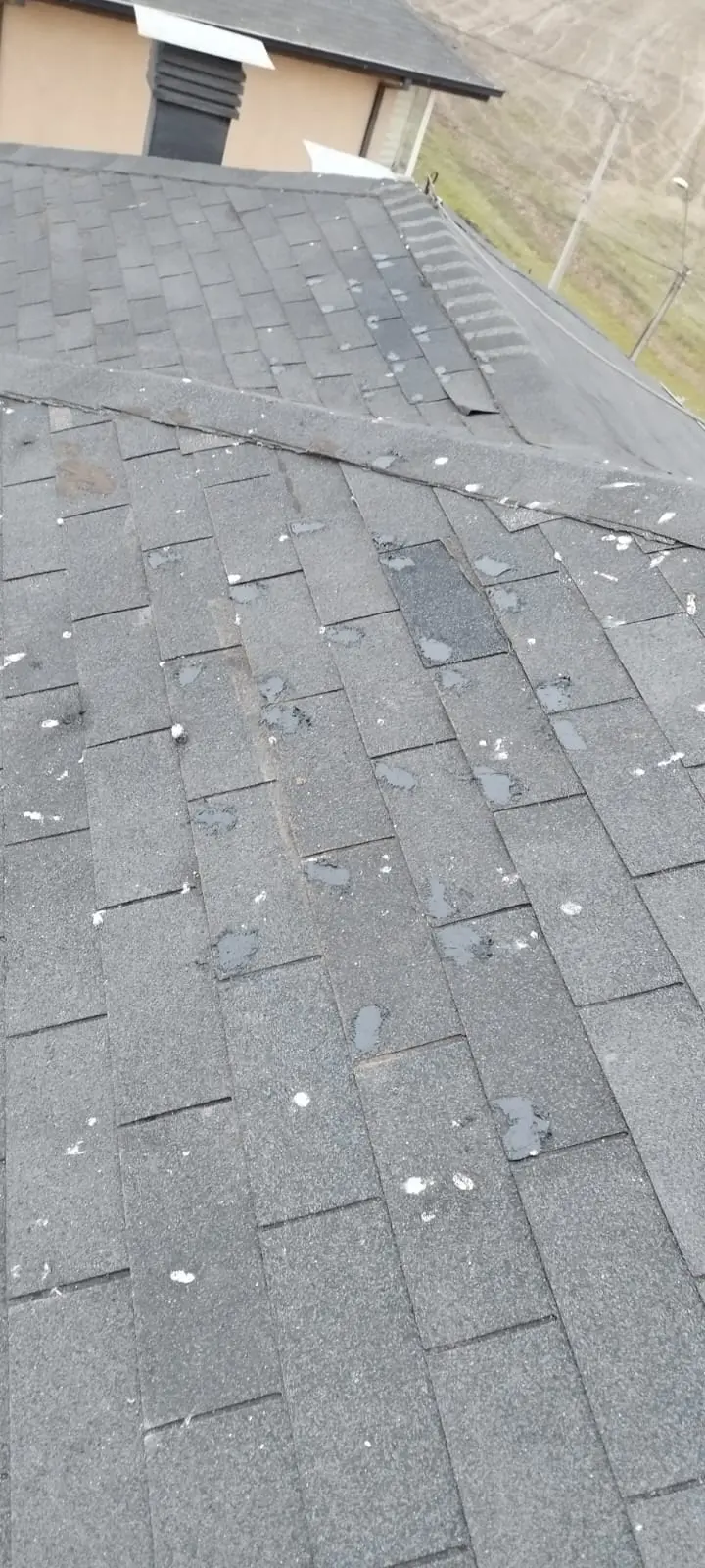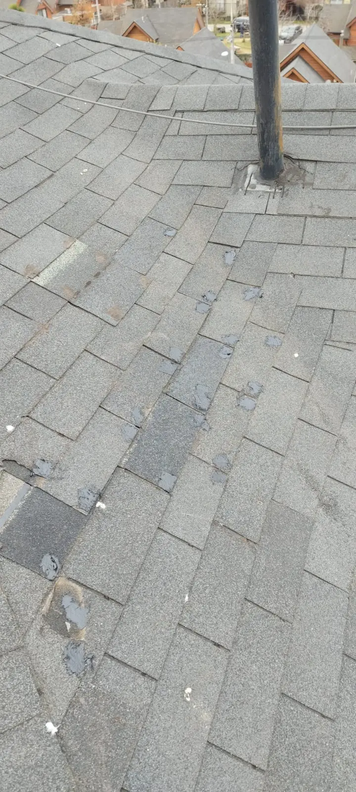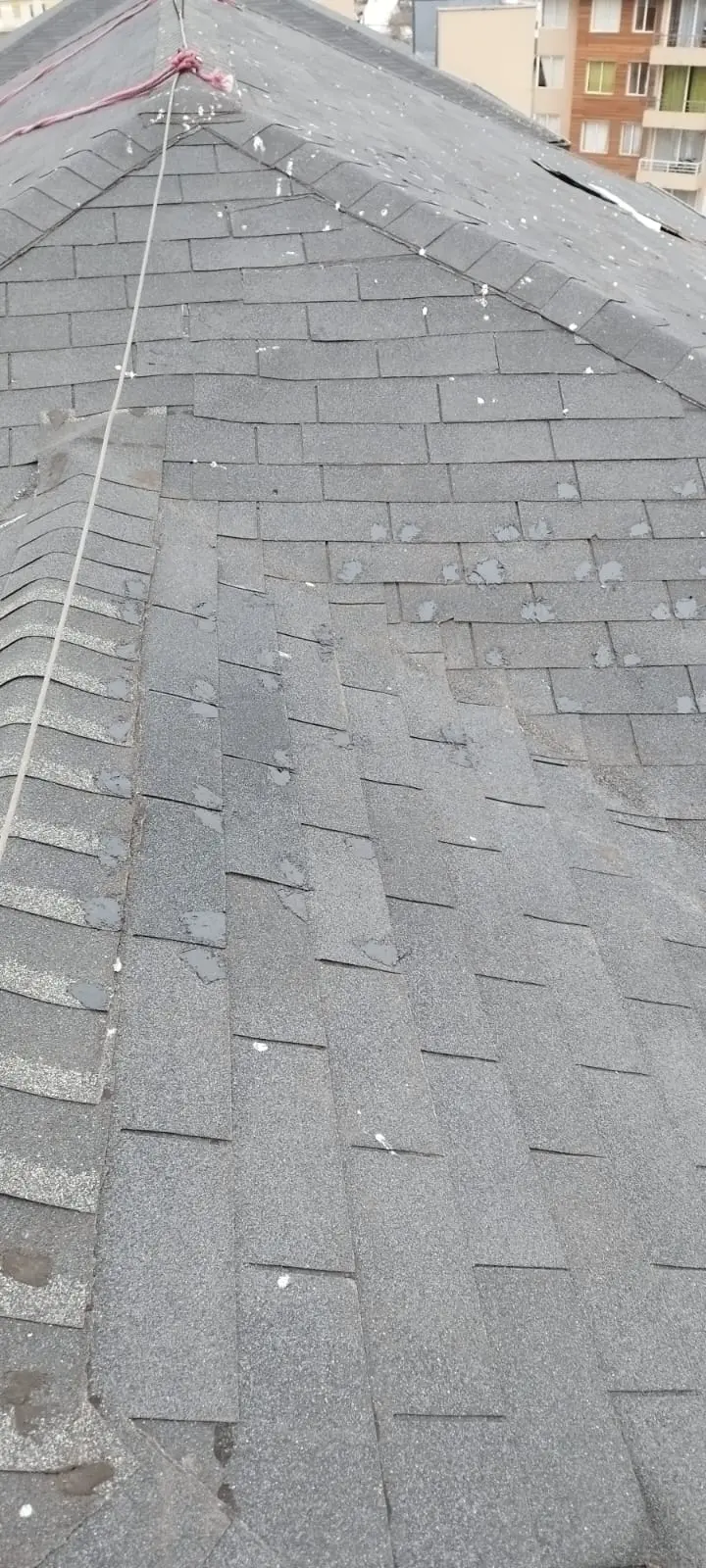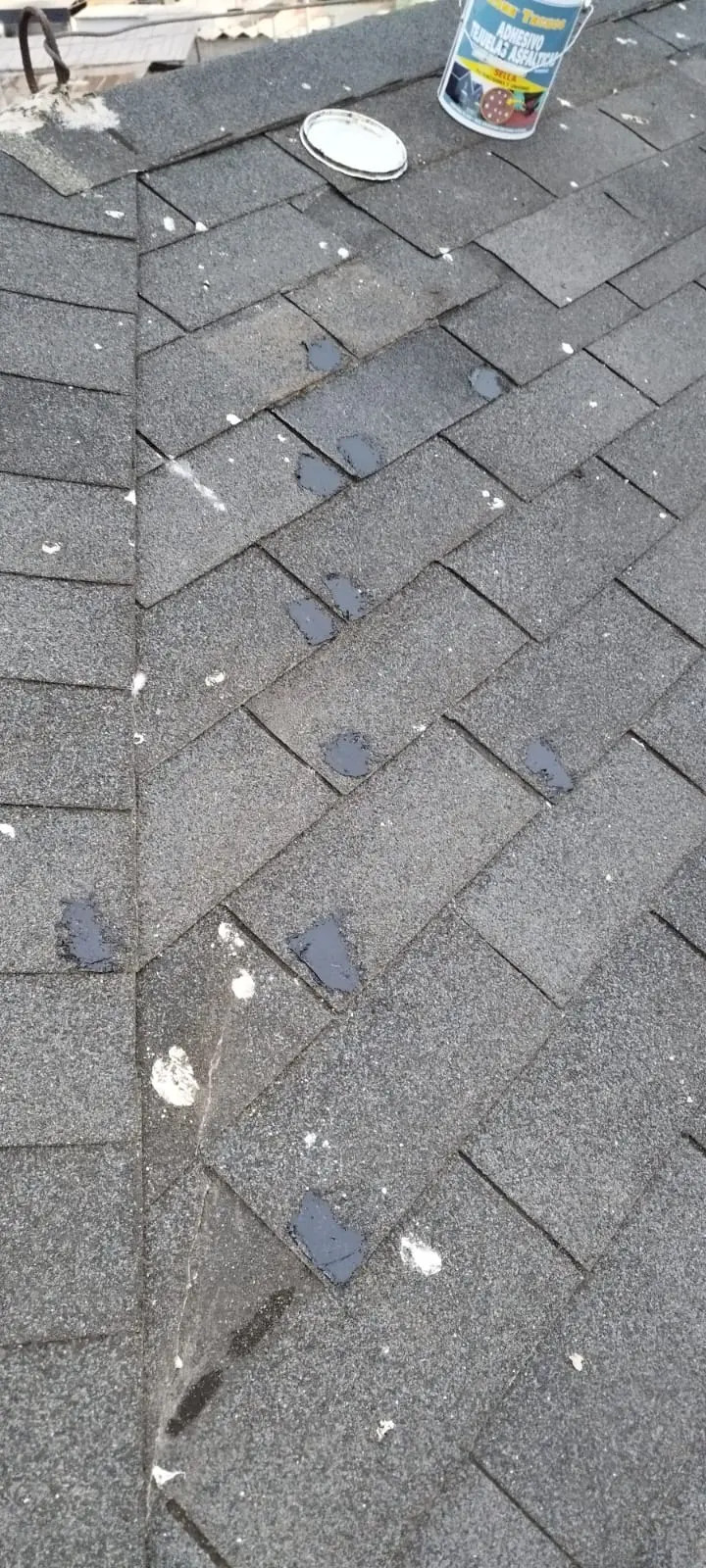 - Reinstalación de tejas desprendidas/completar con tejas nuevas las áreas de los techos, clavando y aplicando sello asfáltico.