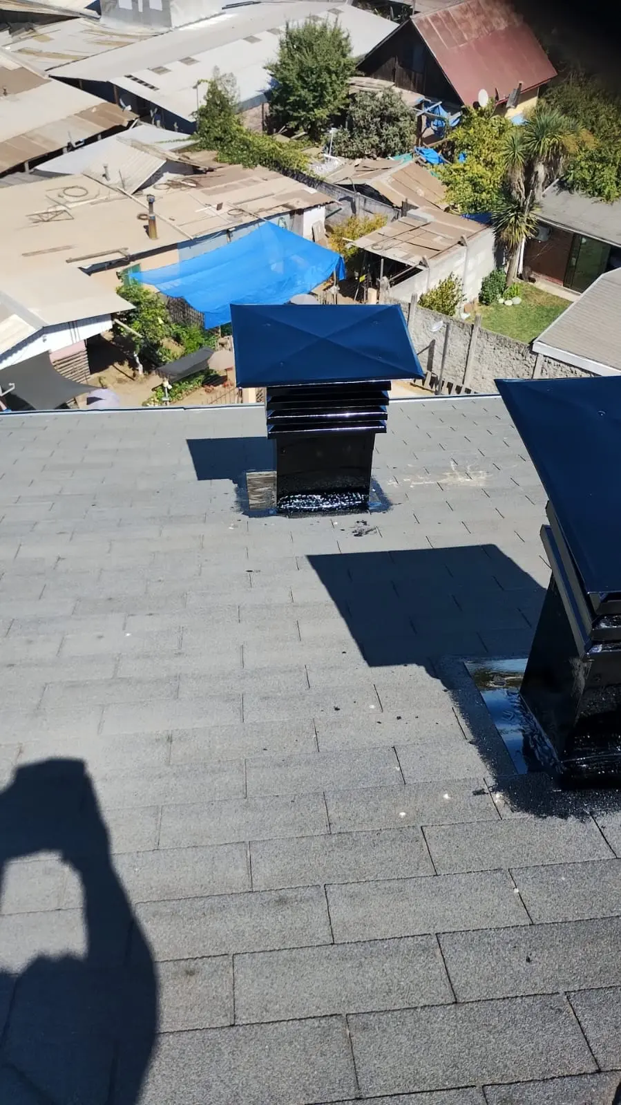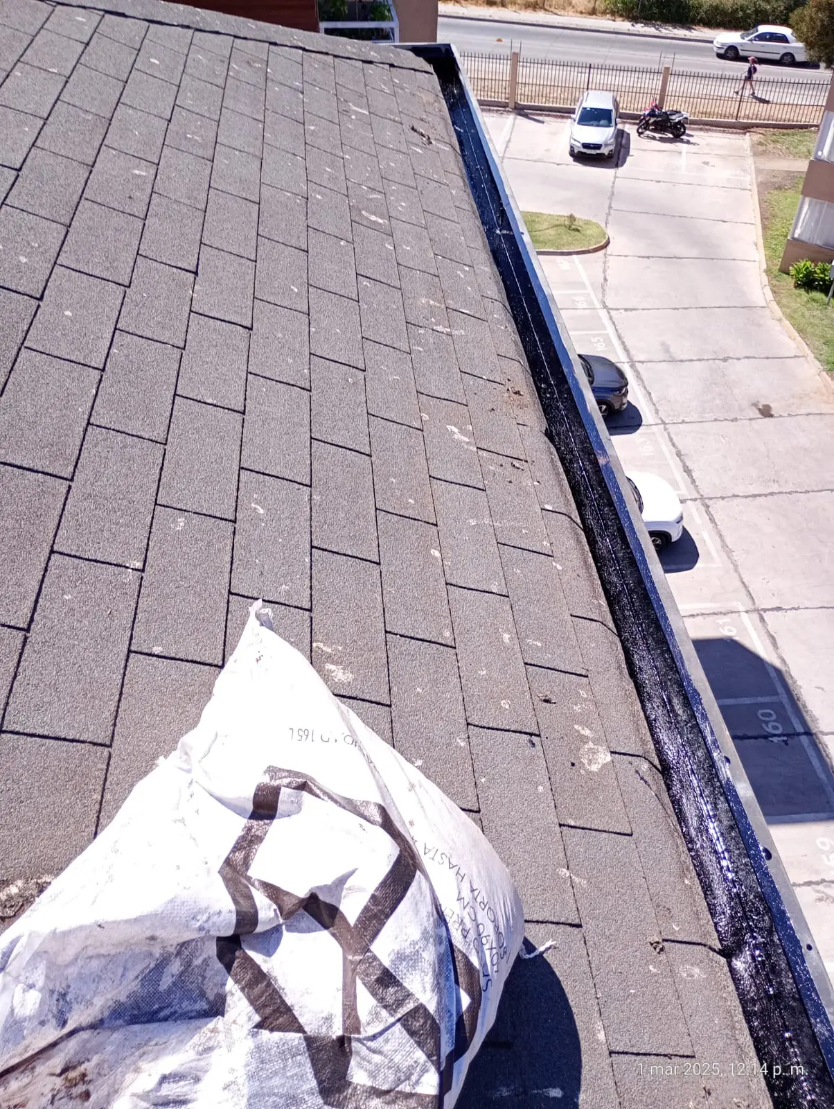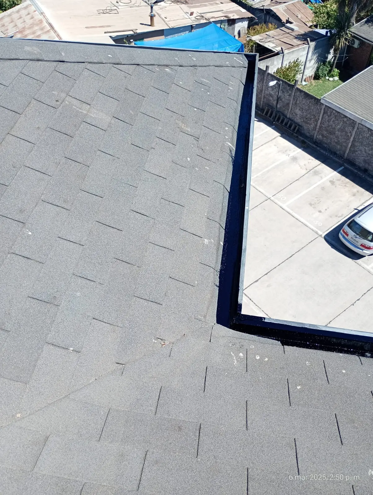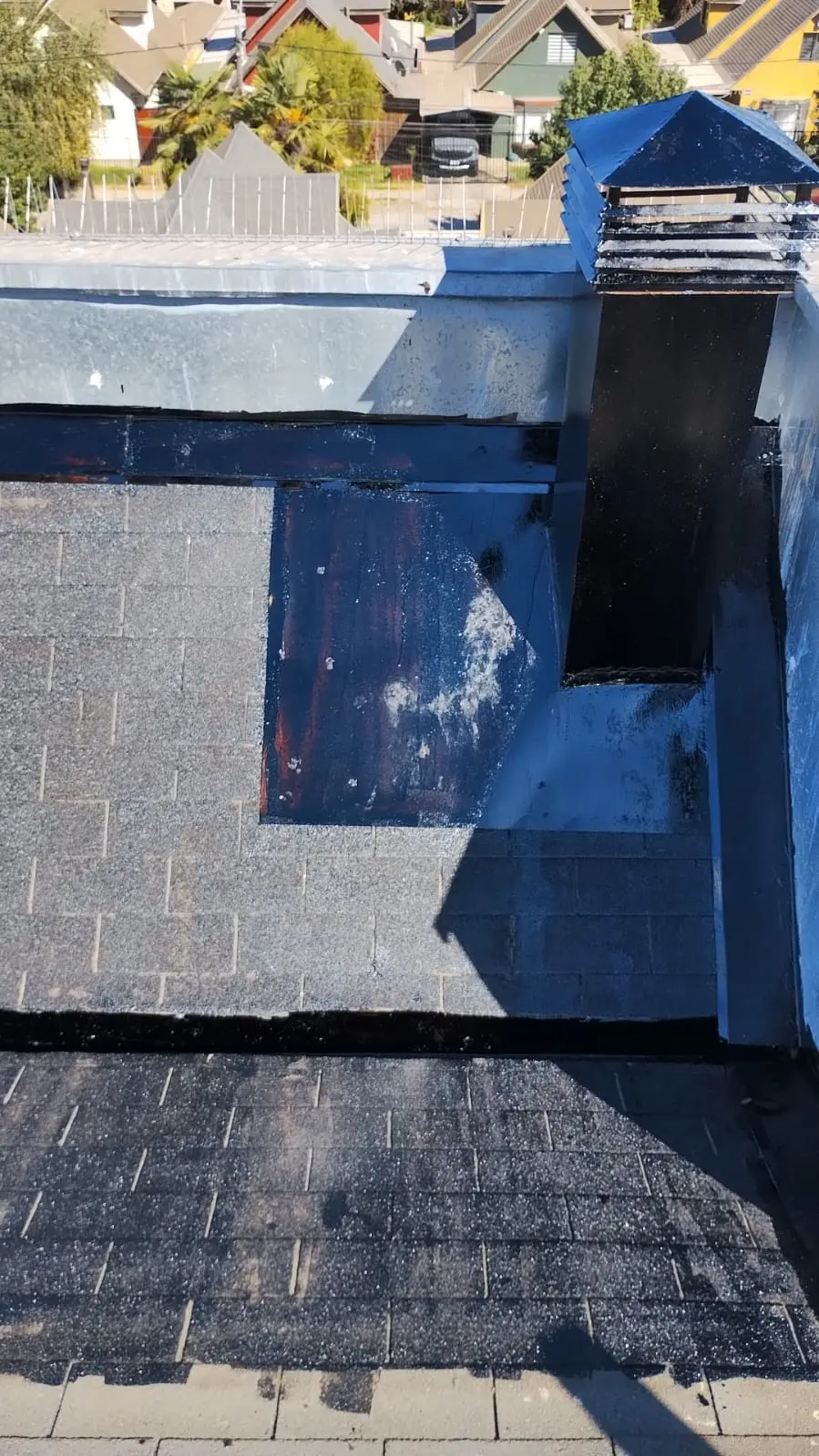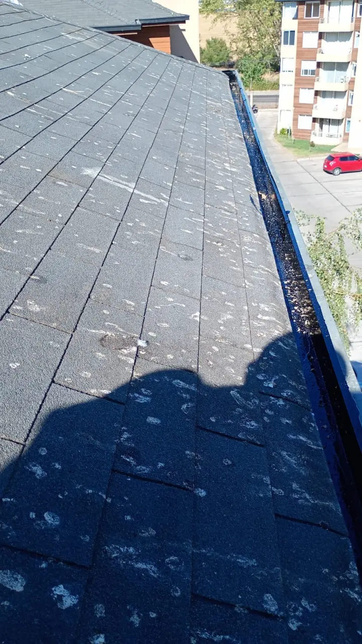 - Tejas asfálticas en mal estado, la que requiere recambio. Tejas con instalación de membrana que no corresponde (bolsas de basura/nylon)