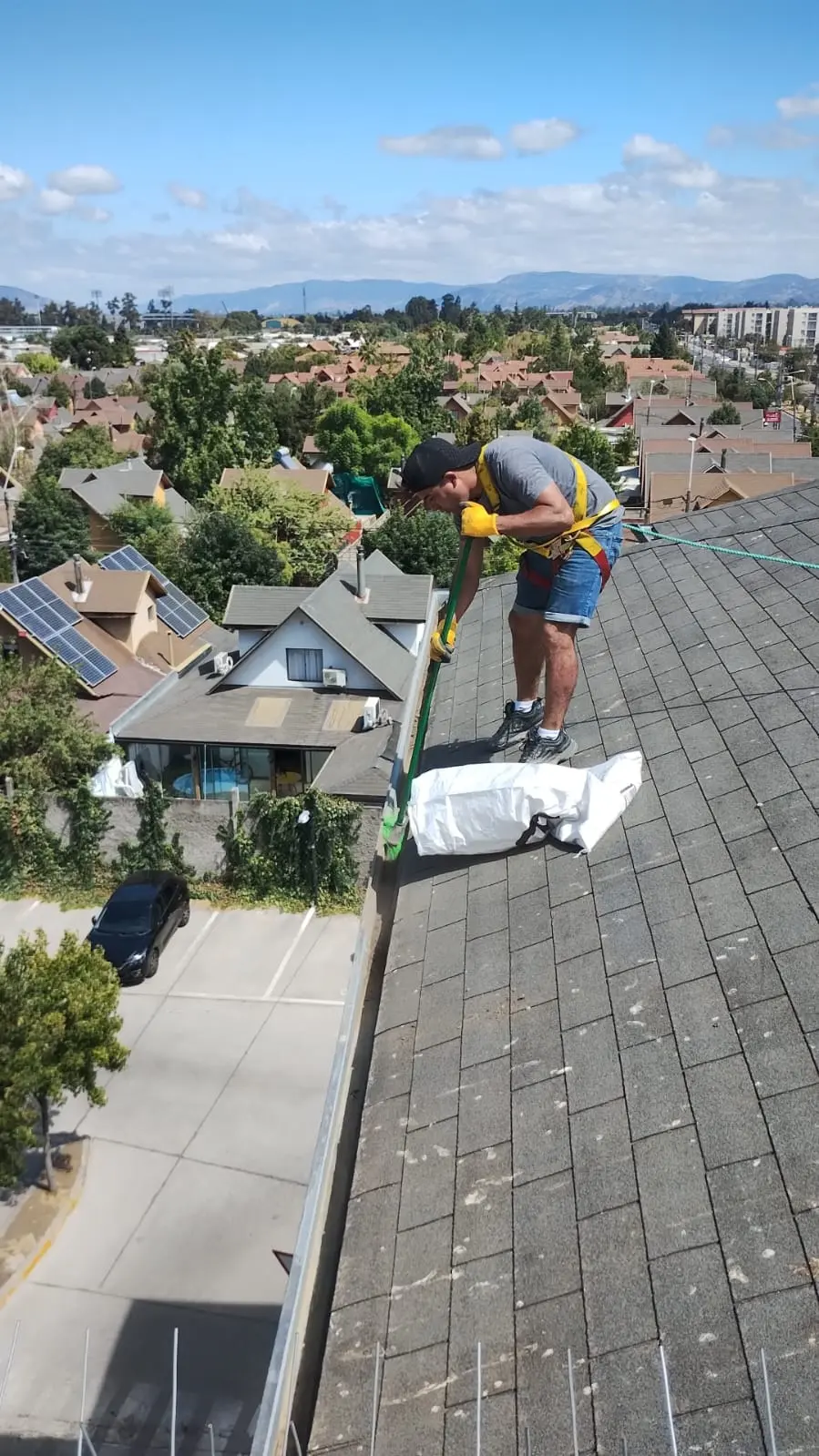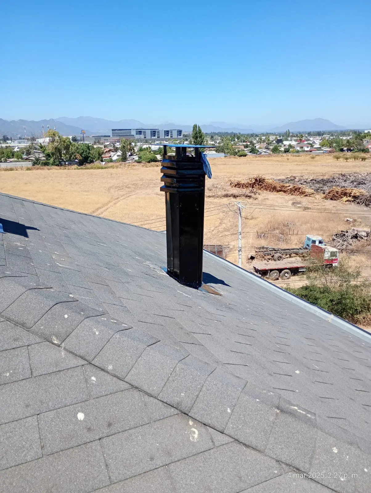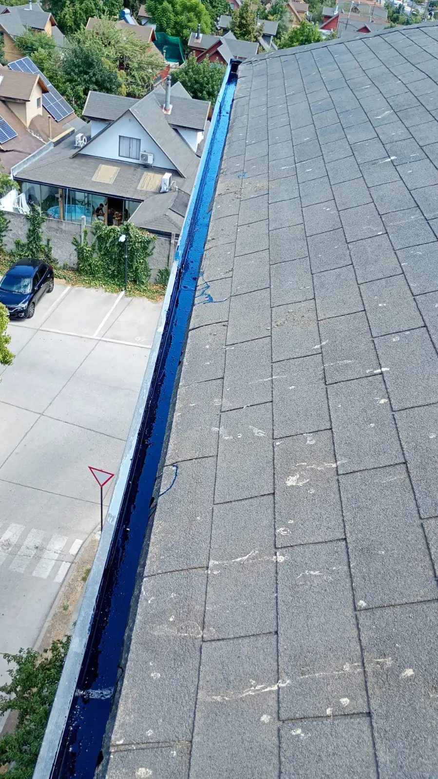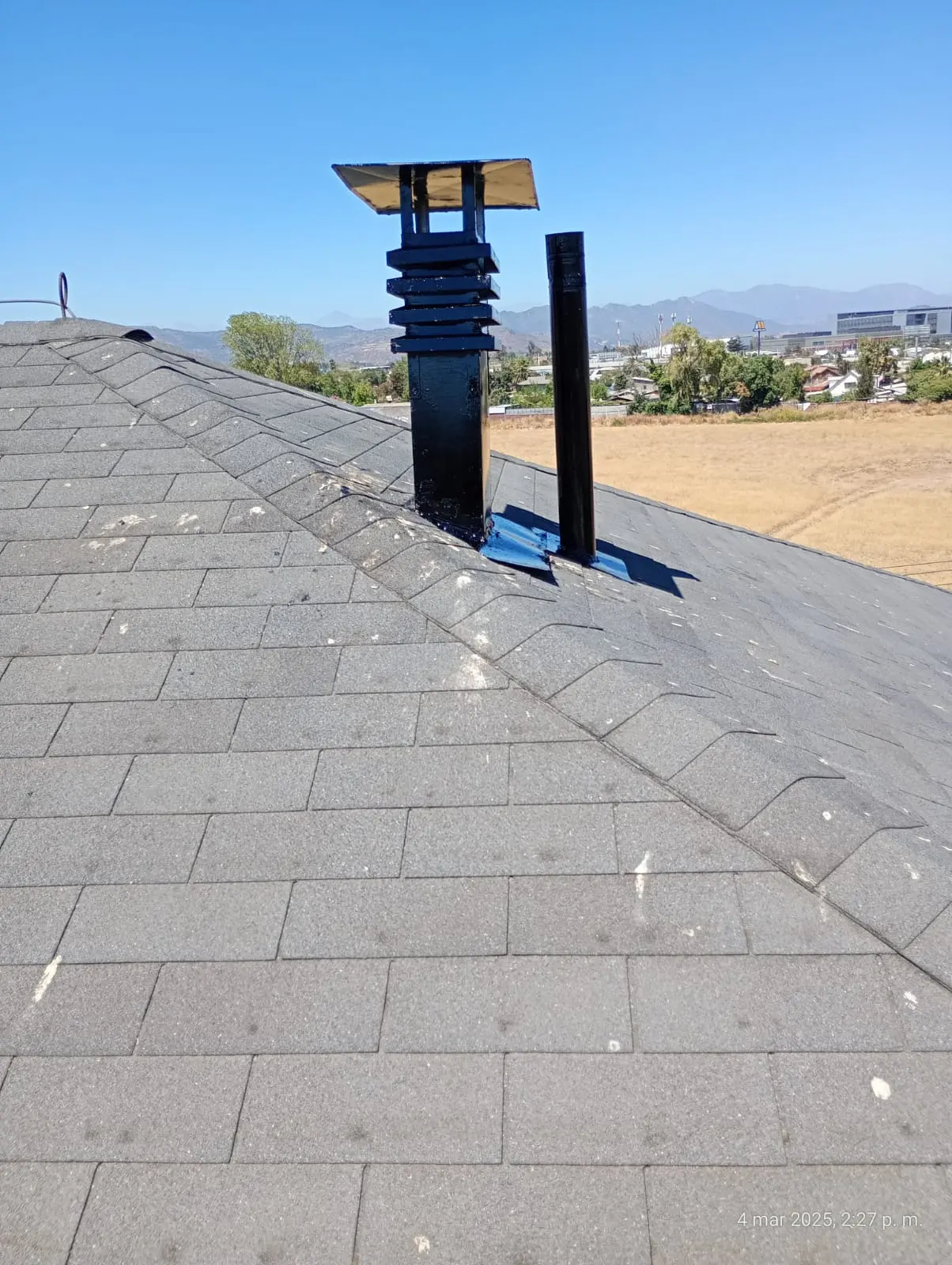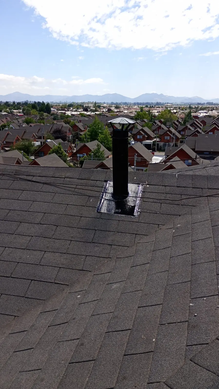 - Tejas asfálticas en mal estado, la que requiere recambio. Tejas con instalación de membrana que no corresponde (bolsas de basura/nylon)