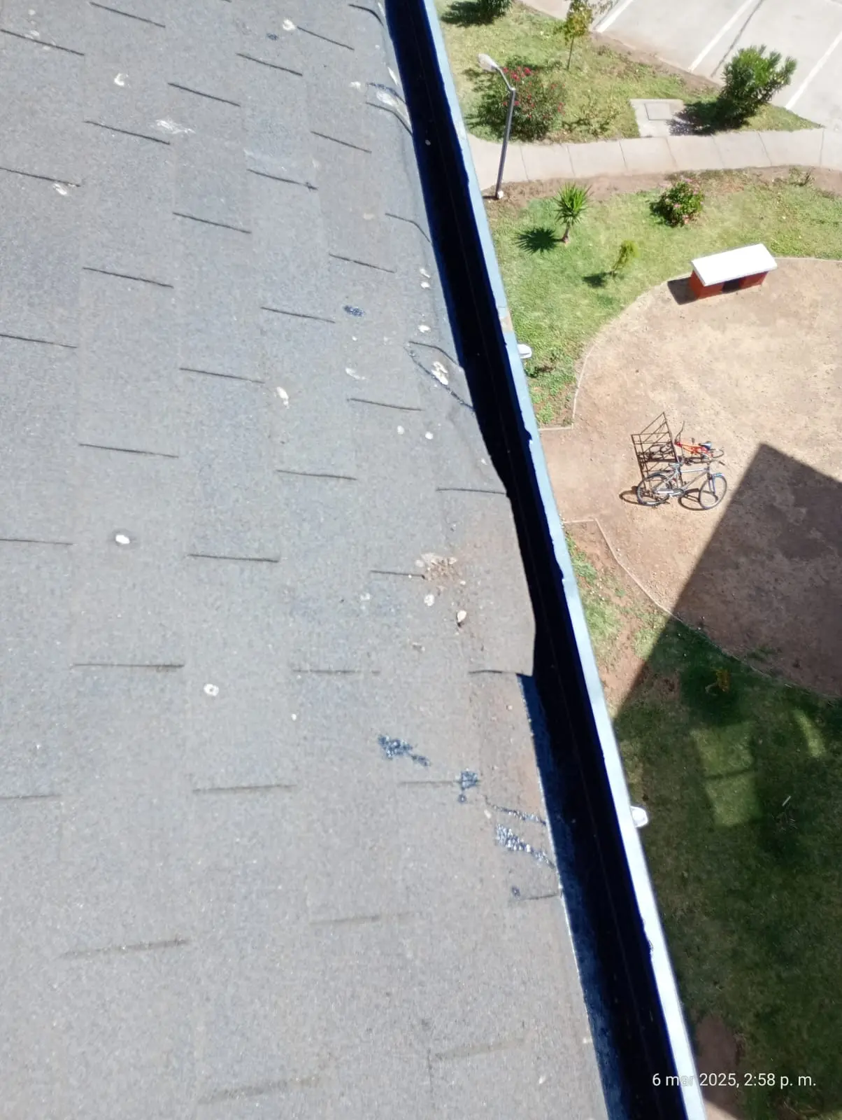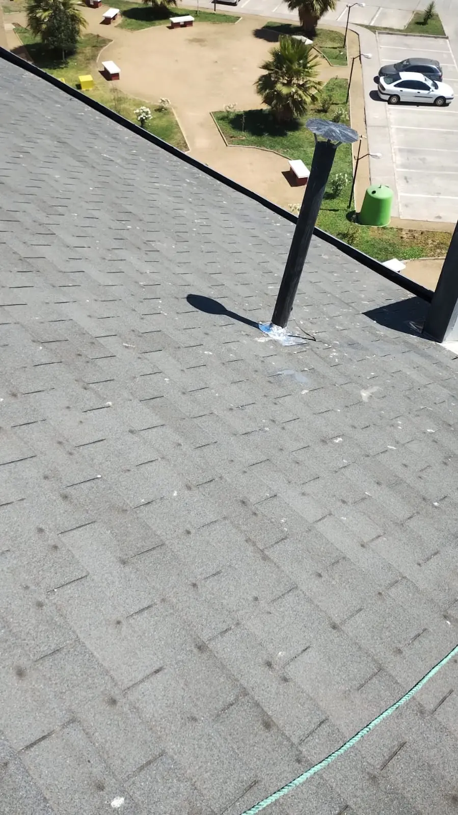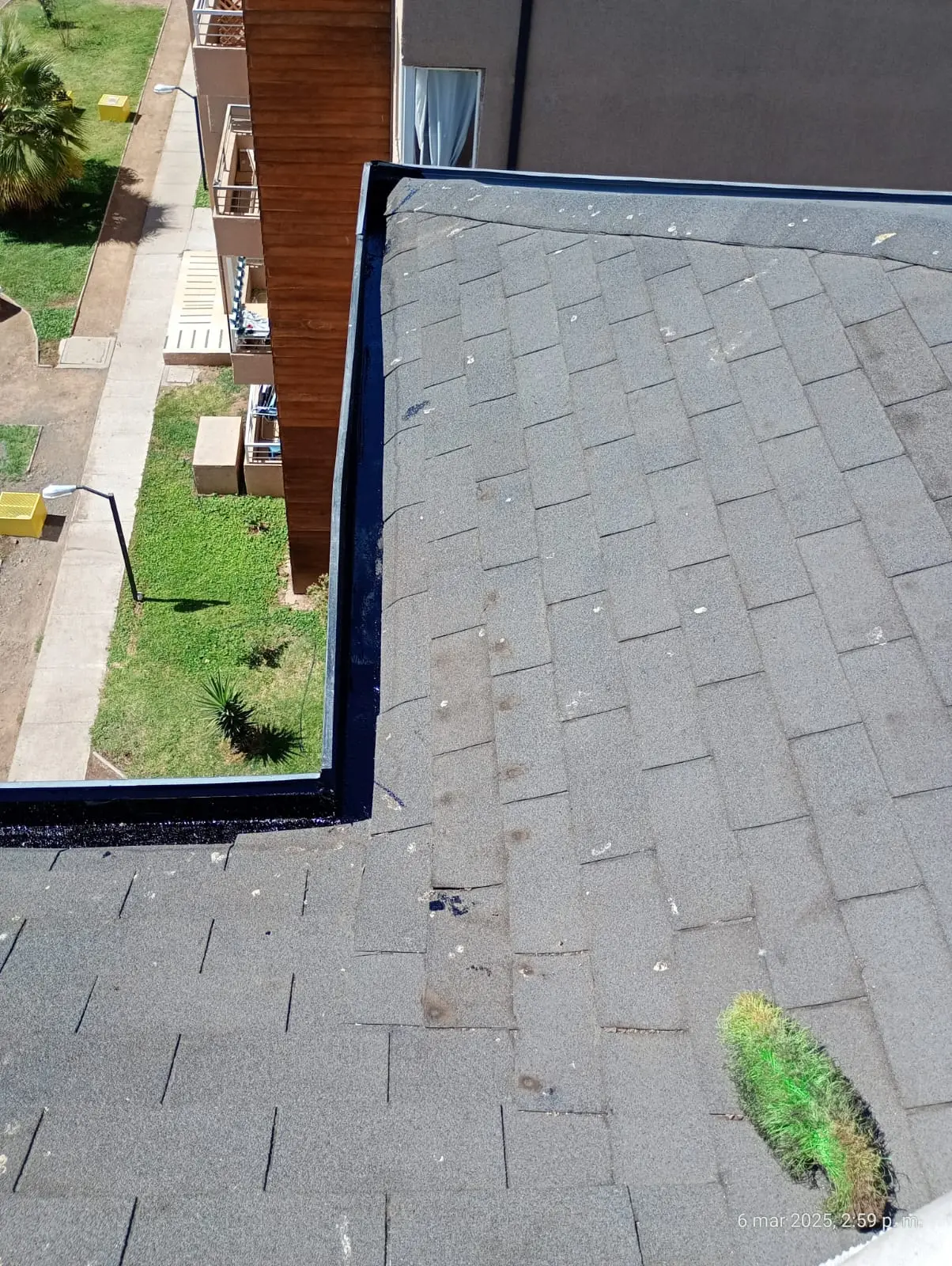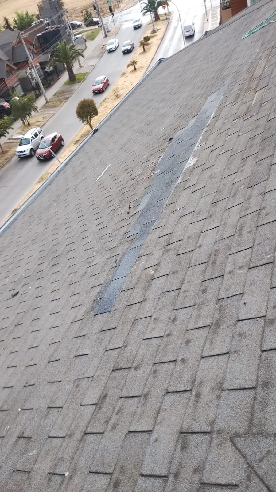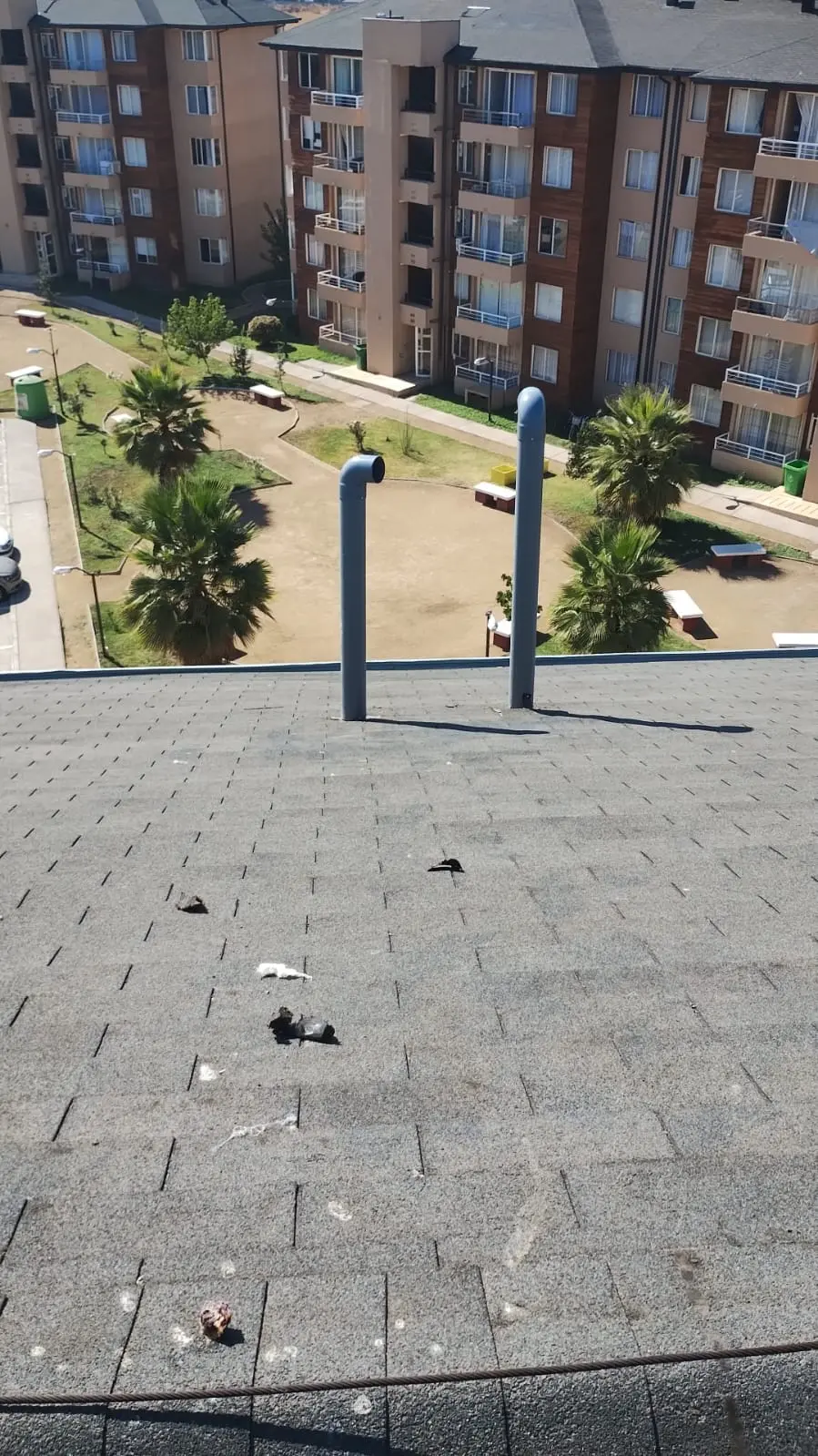 - Faltantes de teja asfáltica: faltan tejas asfálticas en diferentes sectores de las torres.