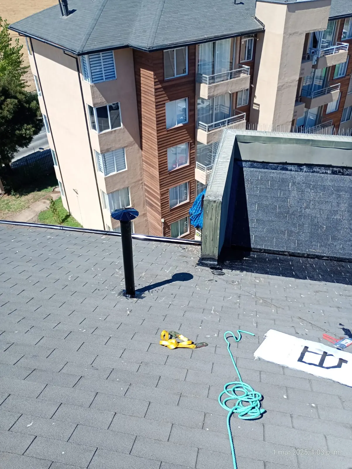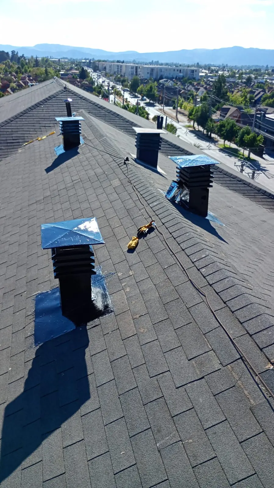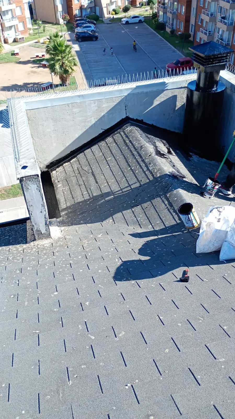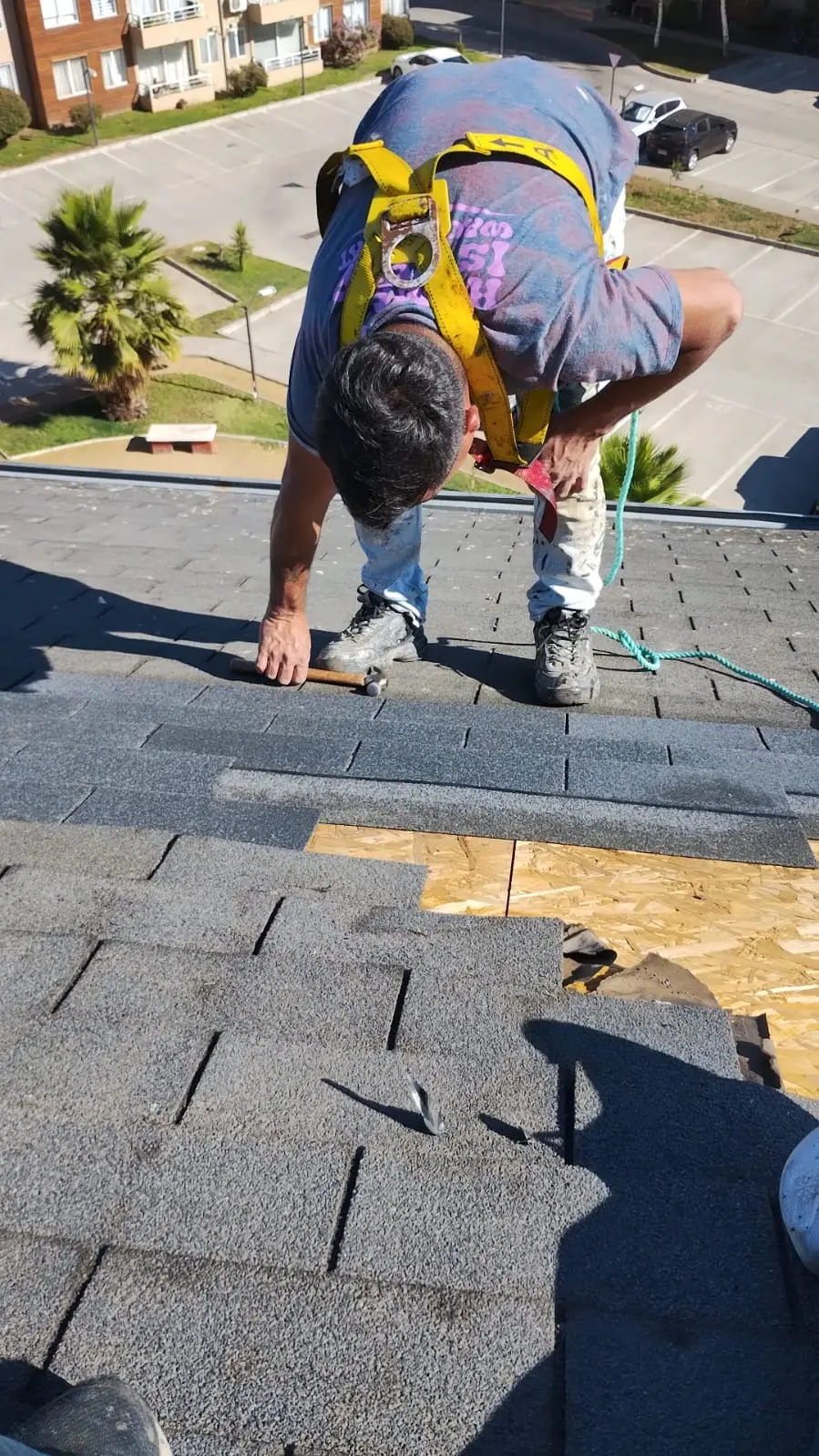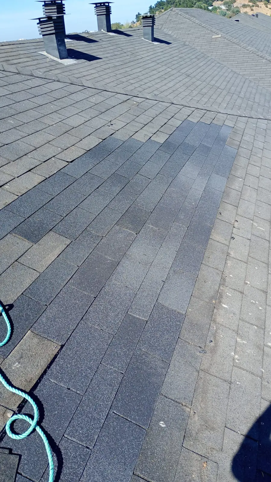 - Faltantes de teja asfáltica: faltan tejas asfálticas en diferentes sectores de las torres.