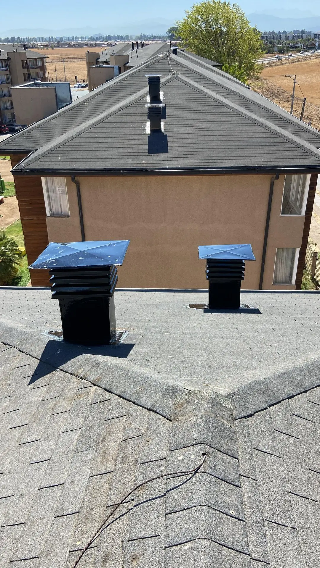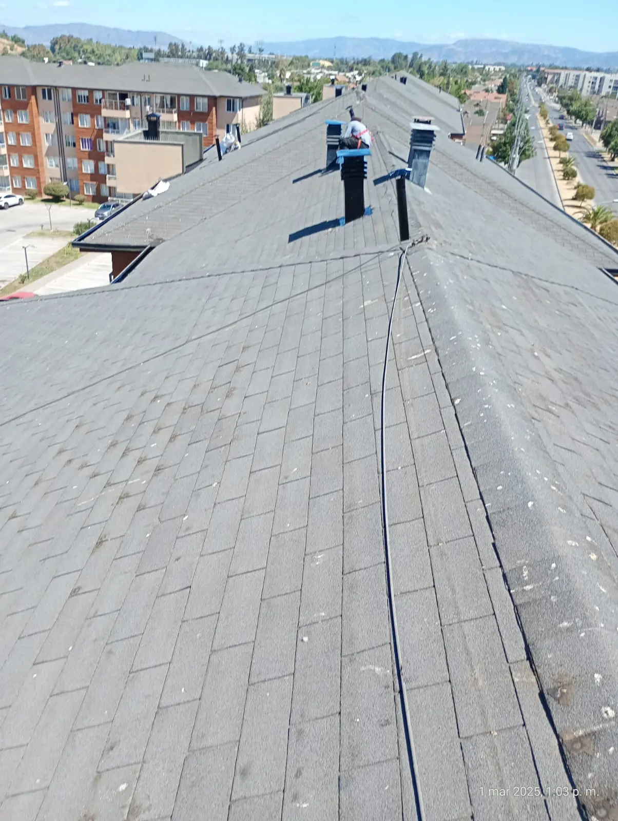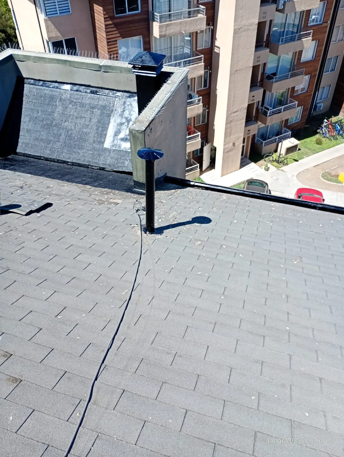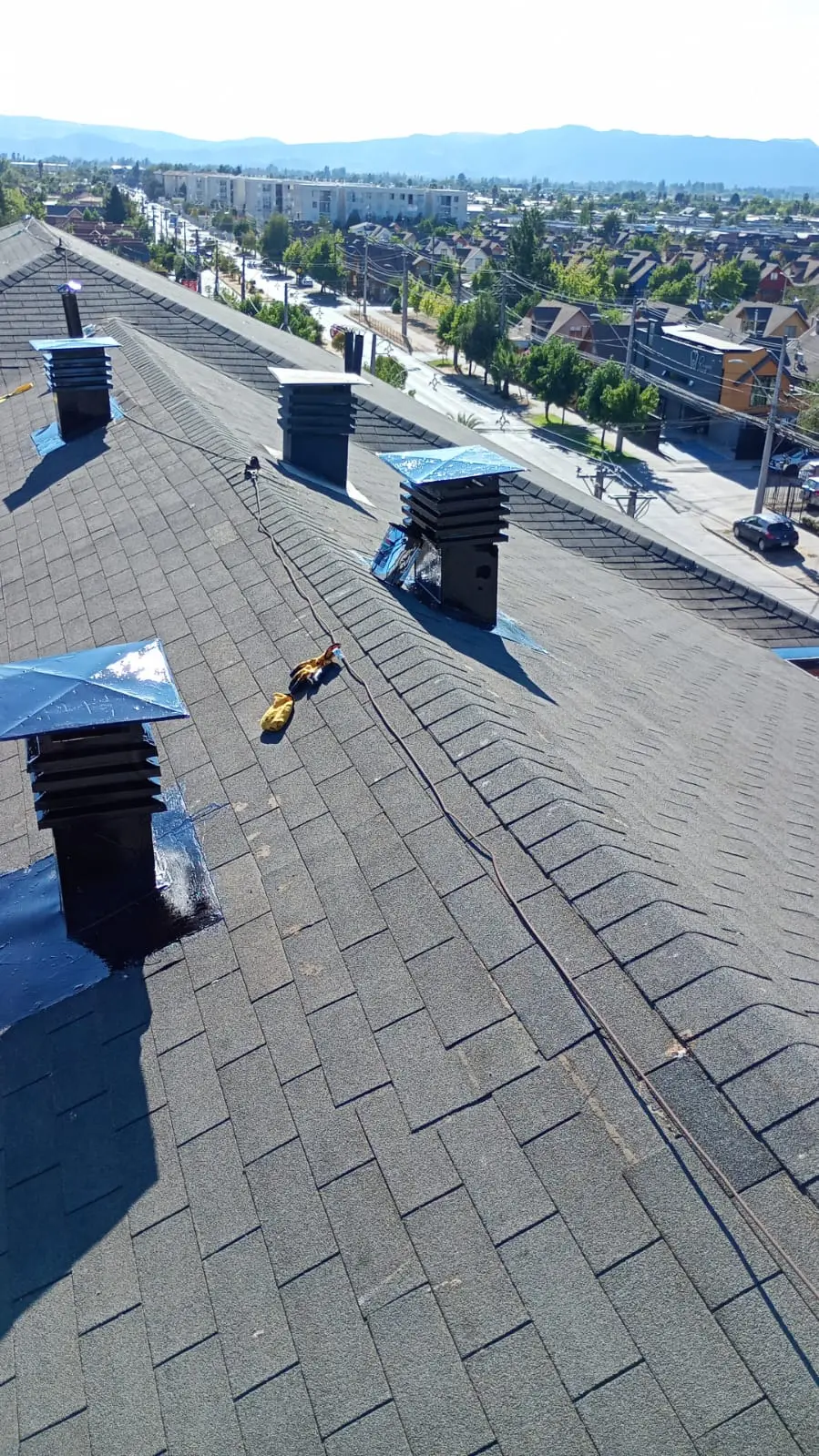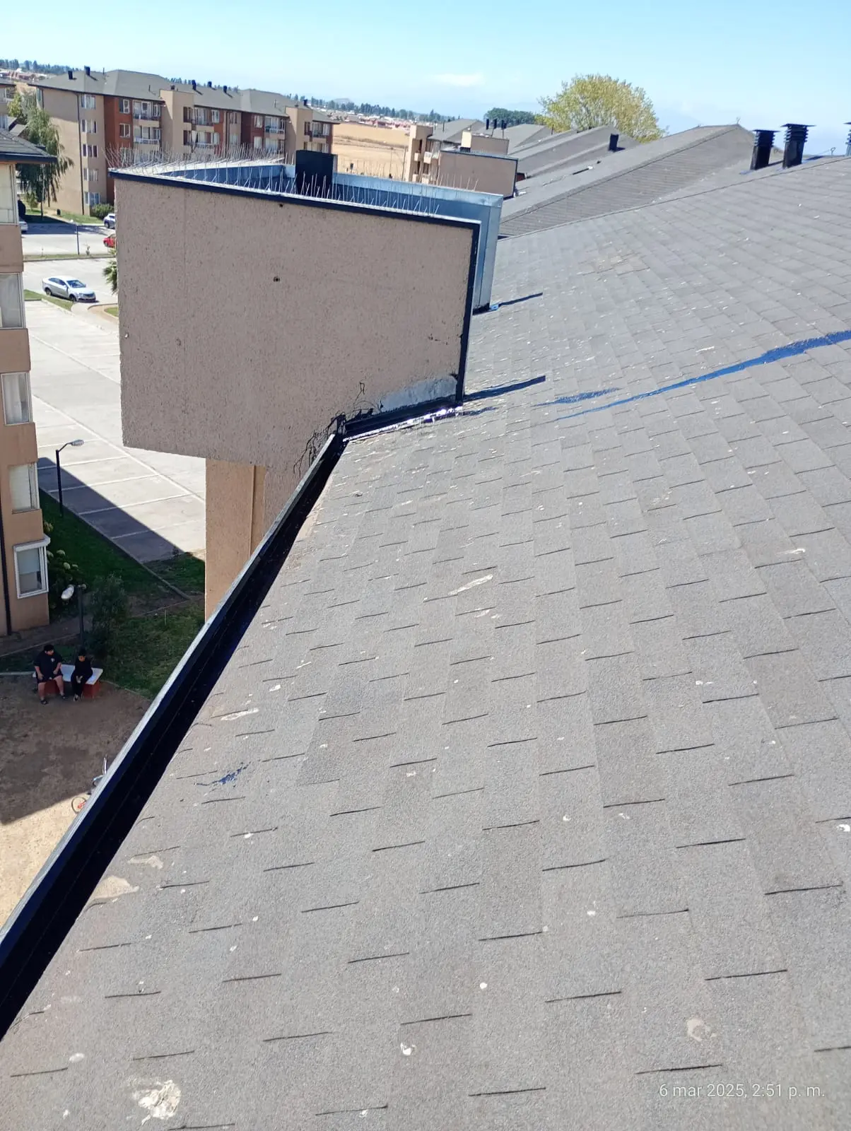 - Faltantes de teja asfáltica: faltan tejas asfálticas en diferentes sectores de las torres.