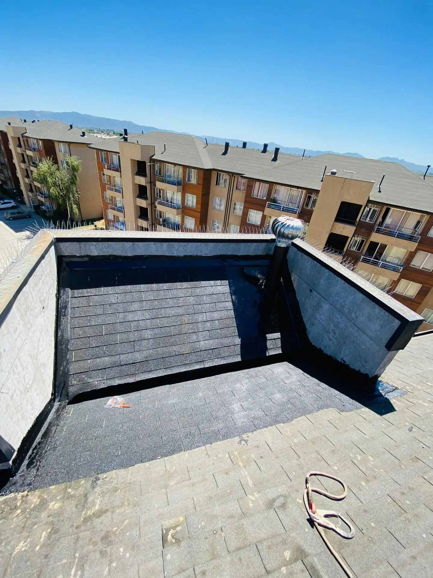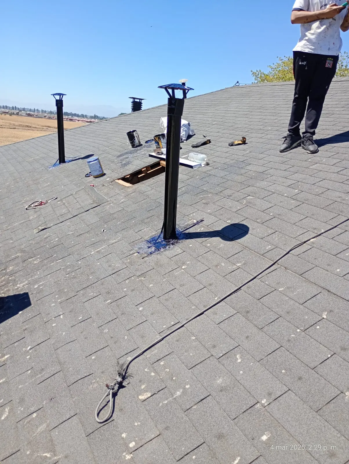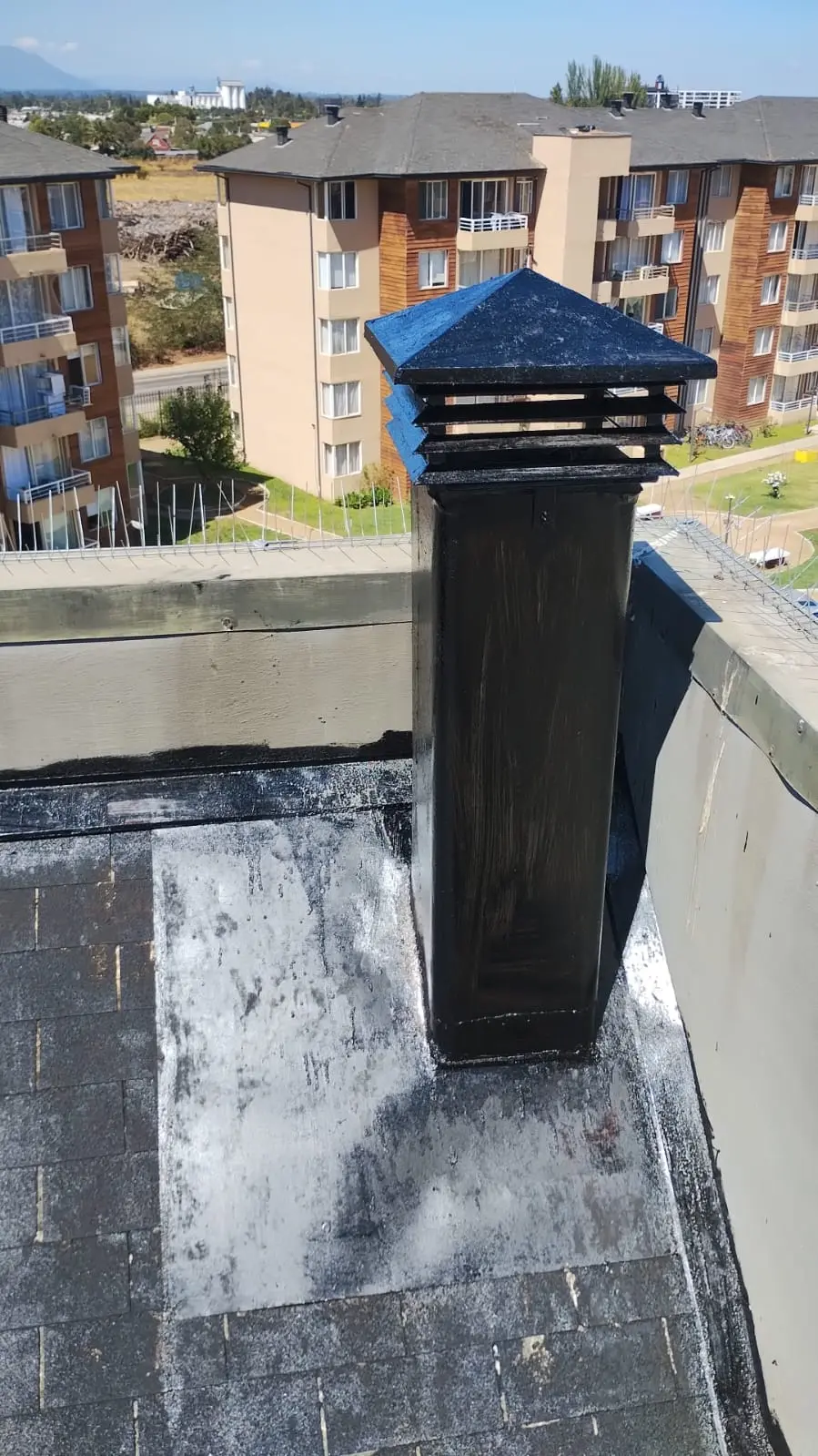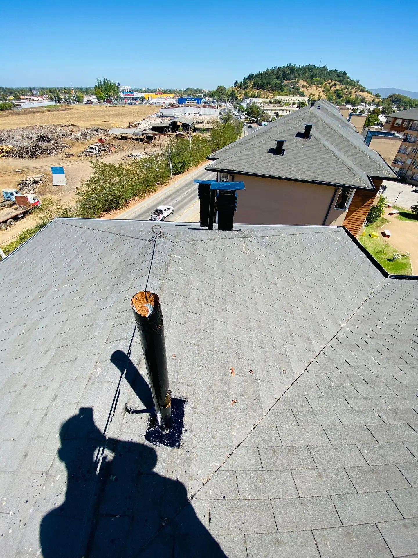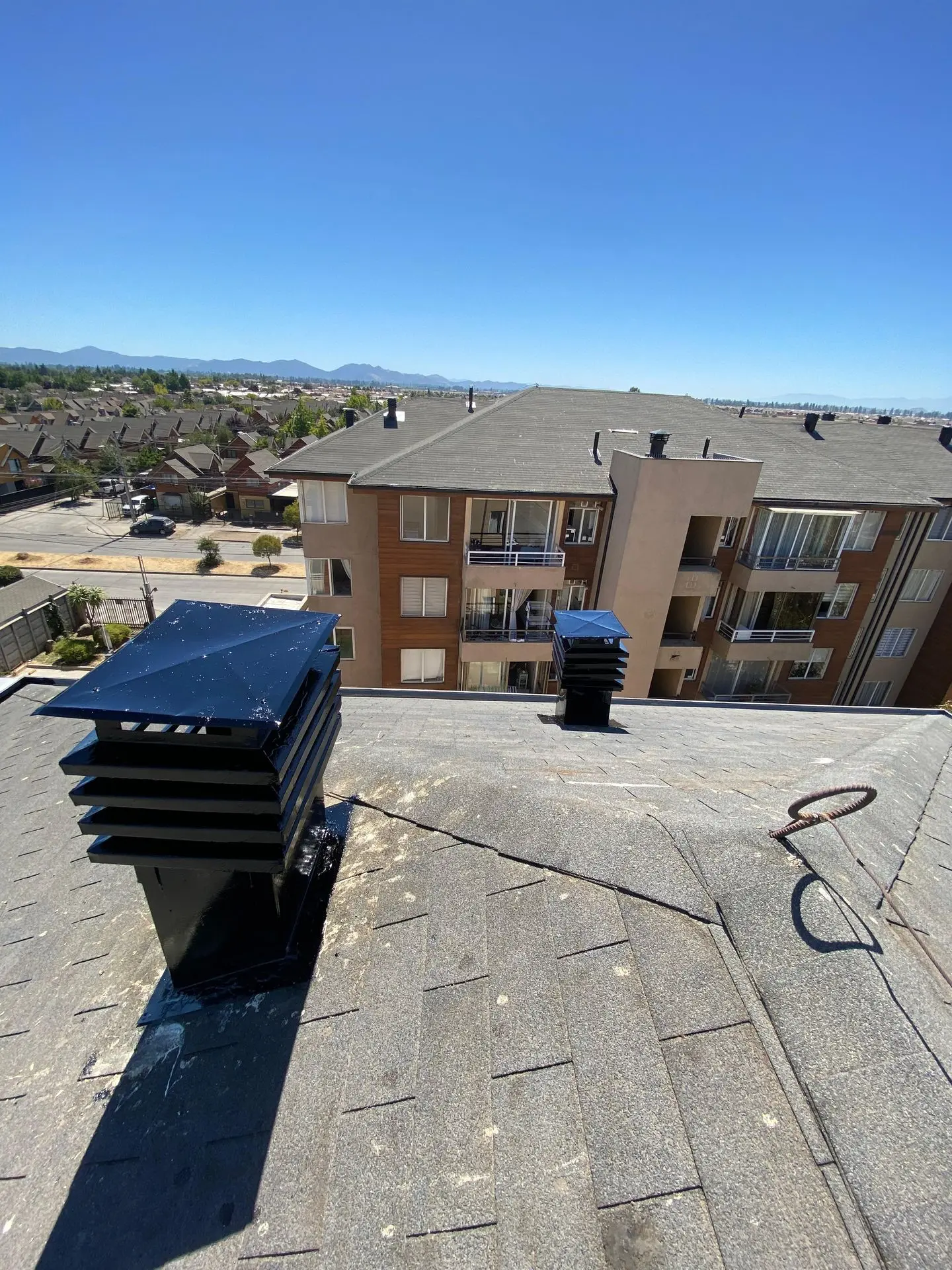 - Faltantes de teja asfáltica: faltan tejas asfálticas en diferentes sectores de las torres.